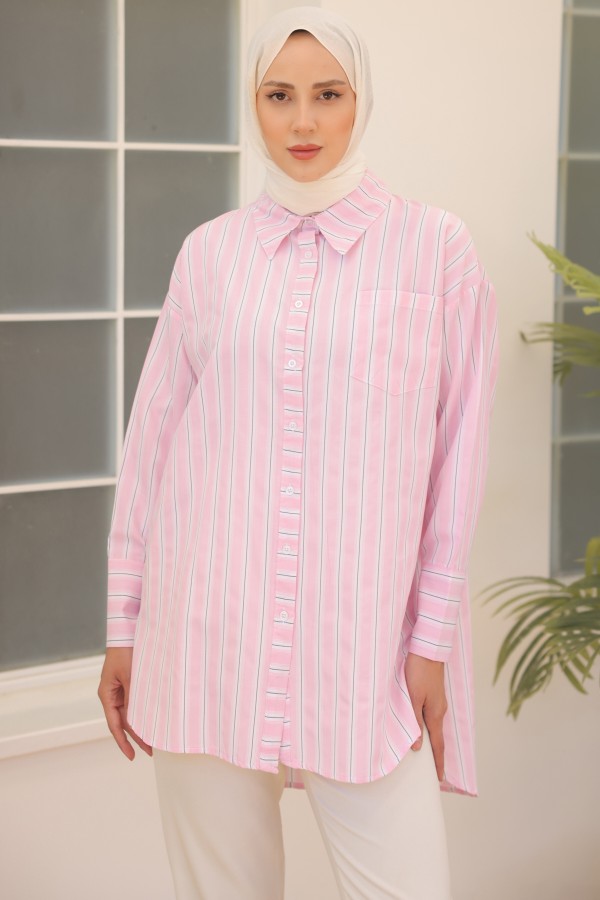 Çizgili Gömlek Pembe 12022