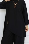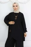 Düğme Detaylı Kolyeli İkili Takım Siyah 4782